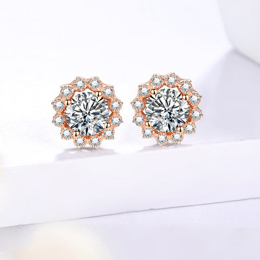 White/Rose Round Cut 1.0CT Moissanite 925 Sterling Silver D Color Earrings