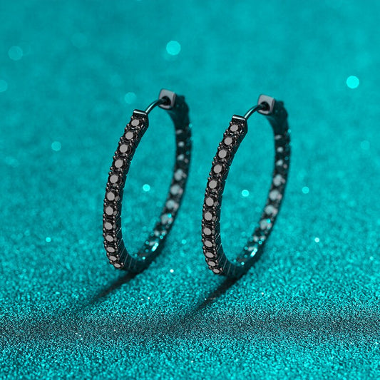 2.88CT White or Black Moissanite Hoop Earrings in 925 Sterling Silver