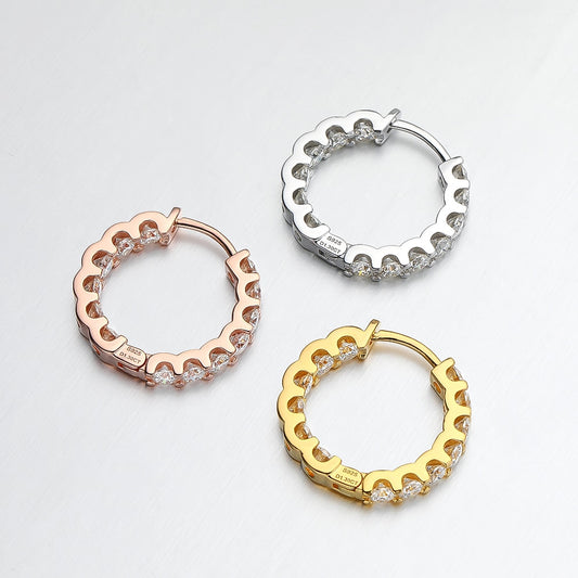 2.6CT Full Moissanite Hoop Earrings in 925 Sterling Silver with 18k White/Rose/Gold Plated.