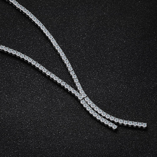 Moissanite Tennis Tie Necklace in 925 Sterling Sliver Plated 18k White Gold