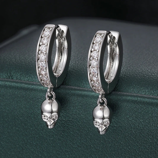 Skull Drop Moissanite Earrings in 925 Sterling Silver
