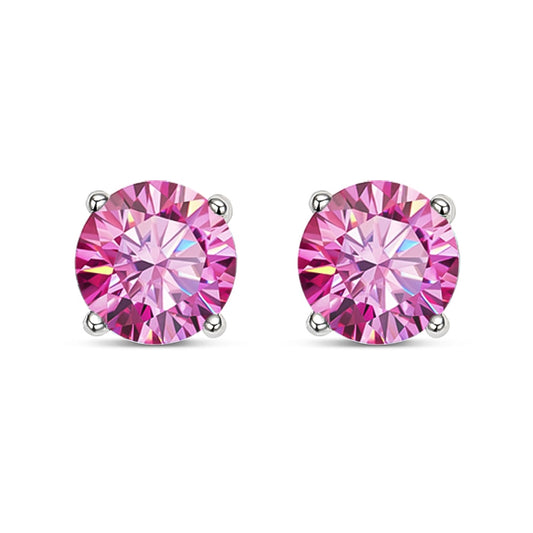 White/Rose/Yellow Moissanite Stud Earrings in Solid 925 Sterling Silver