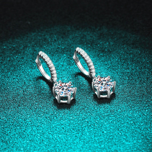 White Gold Plated 0.5/1CT Moissanite Drop Earrings 925 Sterling Silver.