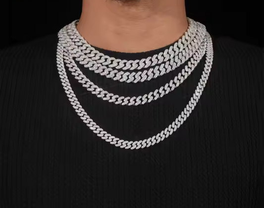8mm, 10mm, 12mm, 13mm Moissanite Cuban Chain in 925 Sterling Silver