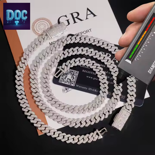 12mm, 14mm Moissanite Prong-Set Link-Chain in 925 Sterling Silver