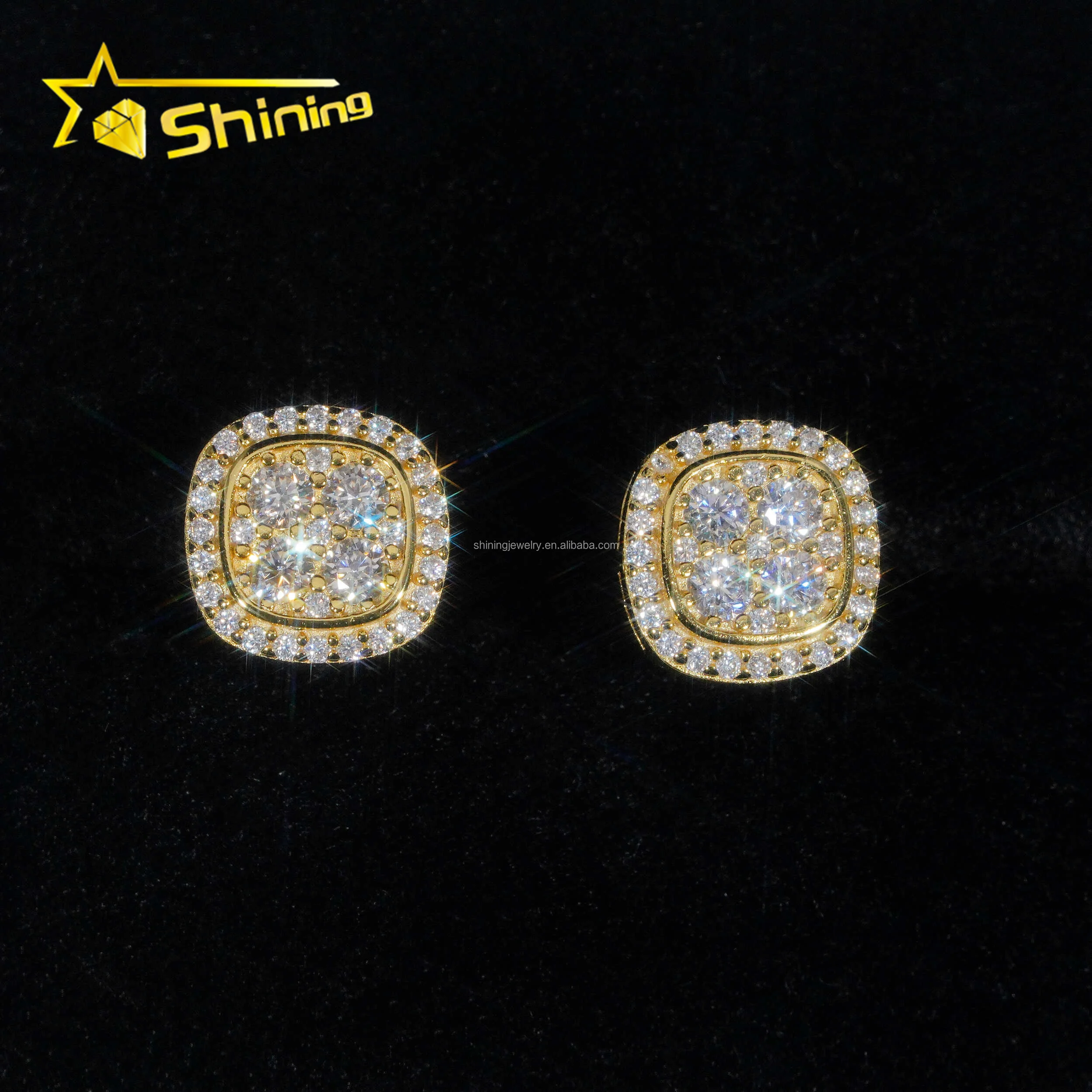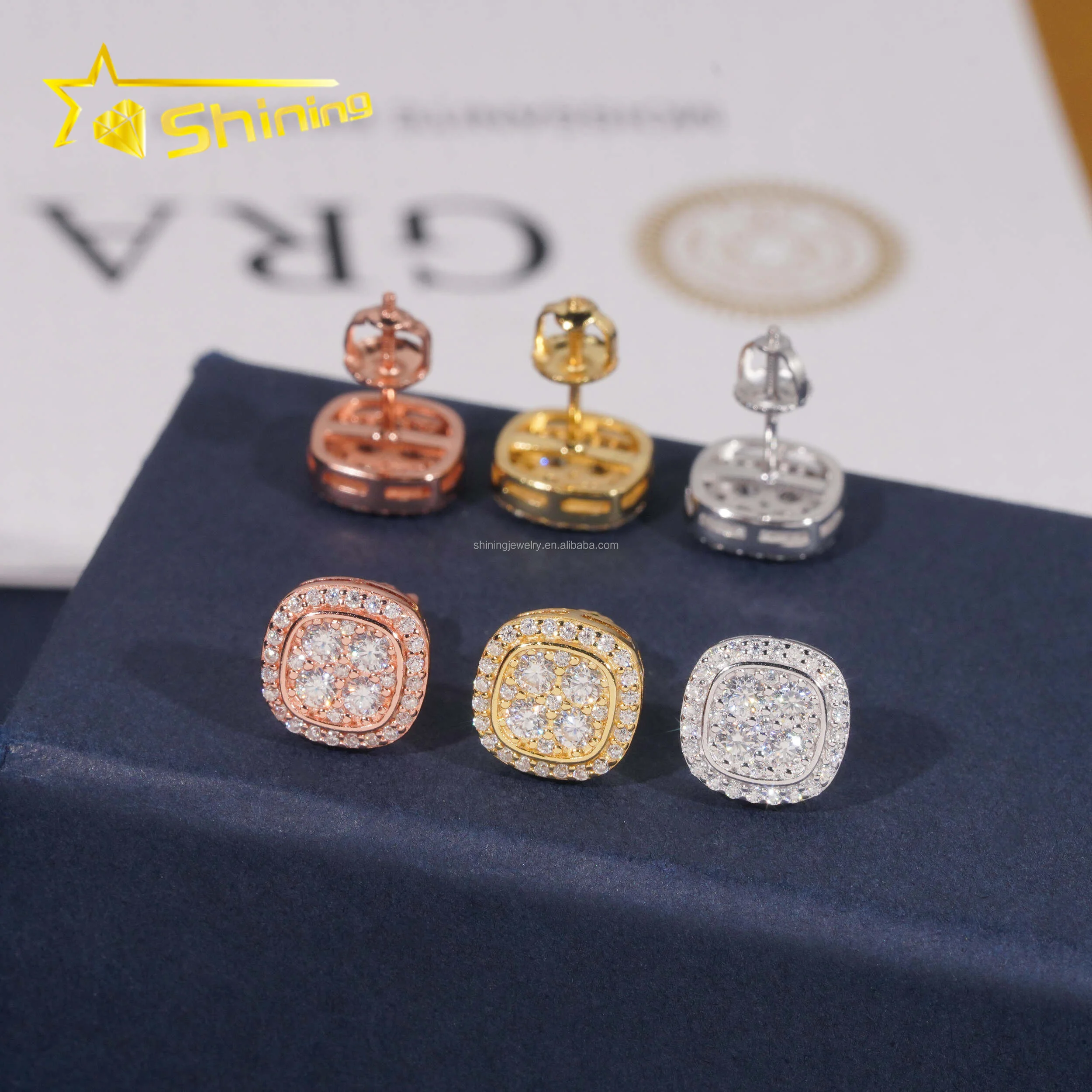Pendientes de plata de ley 925 chapados en oro de 10 mm con diamantes VVS y moissanita, con cierre de rosca, envío rápido.
