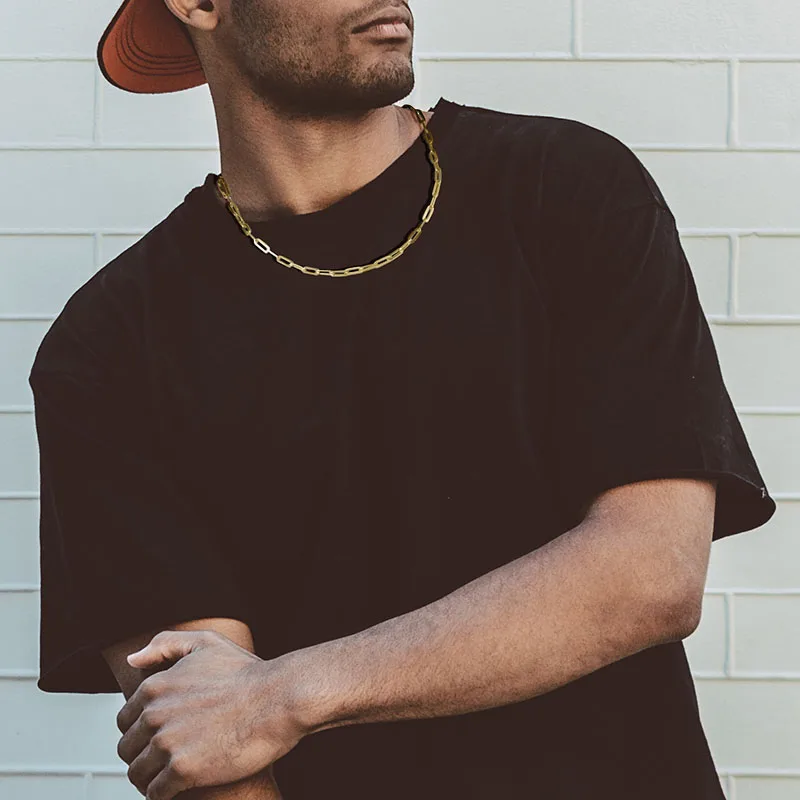 RINNTIN SC39 - Cadena de eslabones con clip chapada en plata de ley 925, gruesa, chapada en oro, para mujeres, hombres y niñas