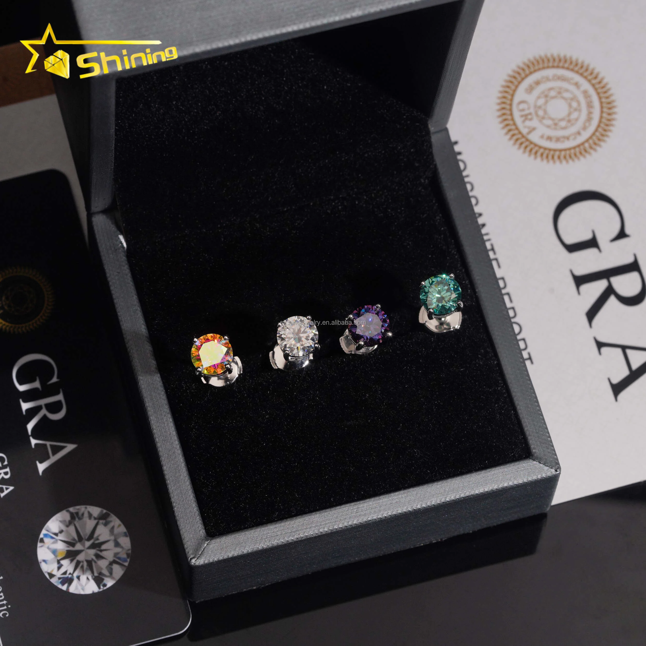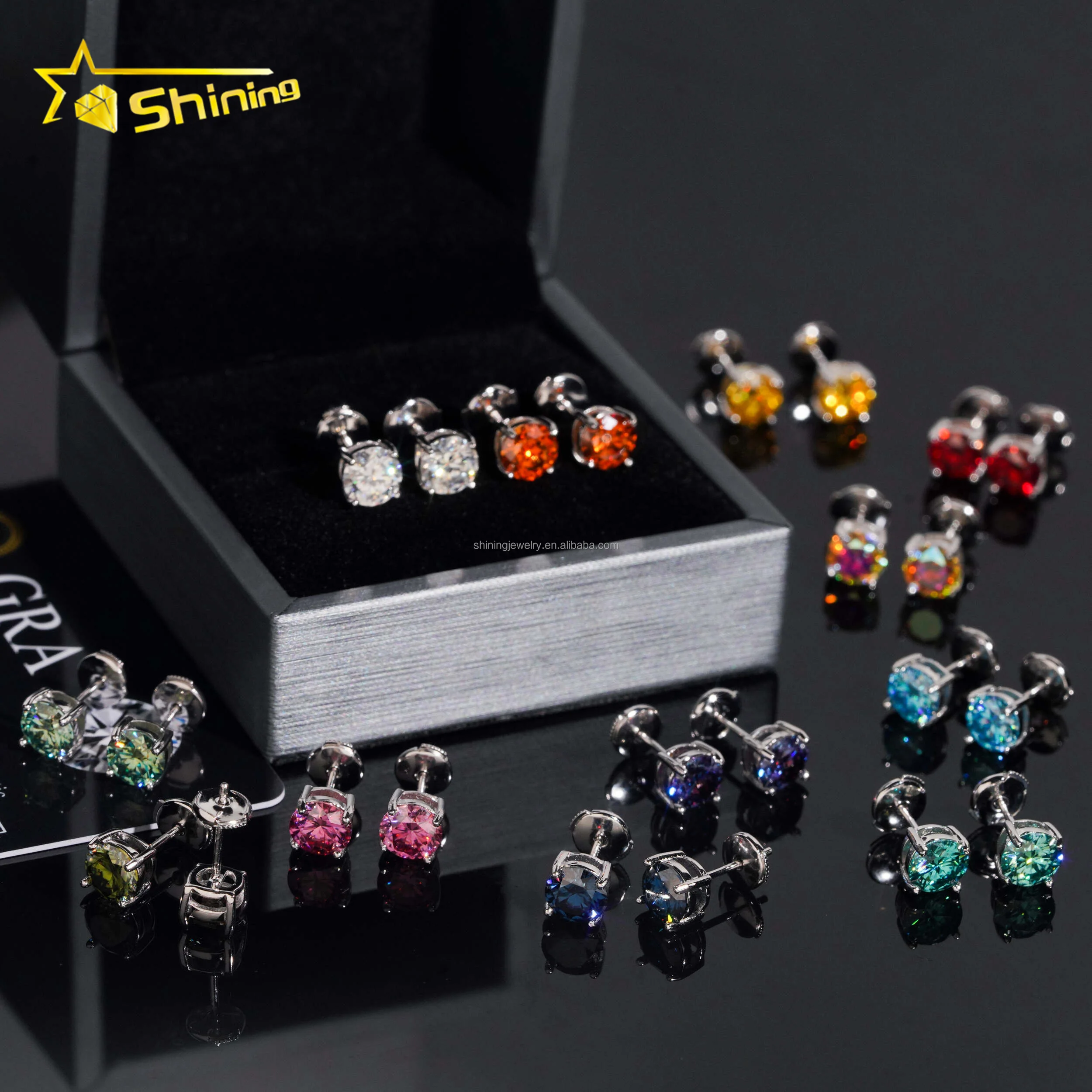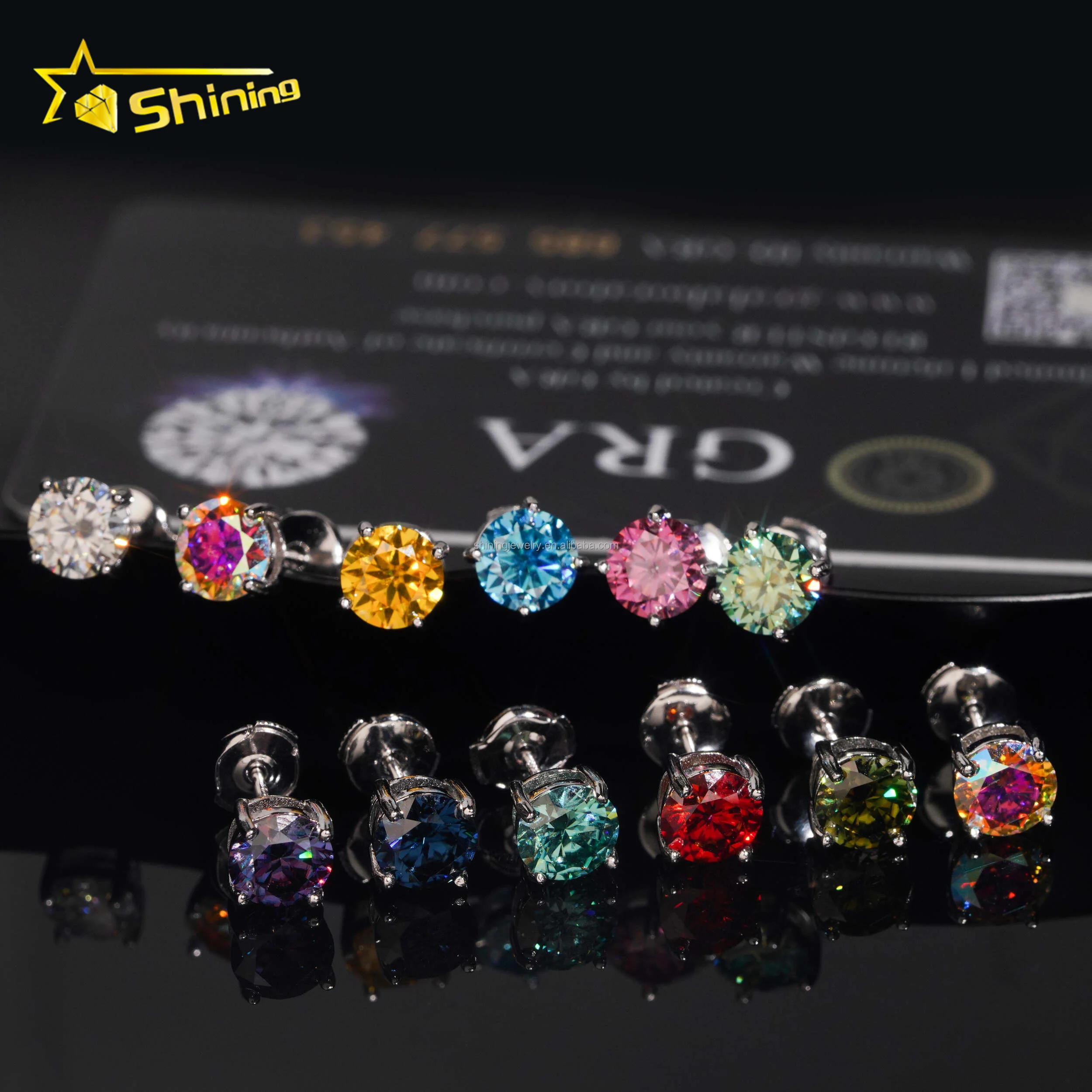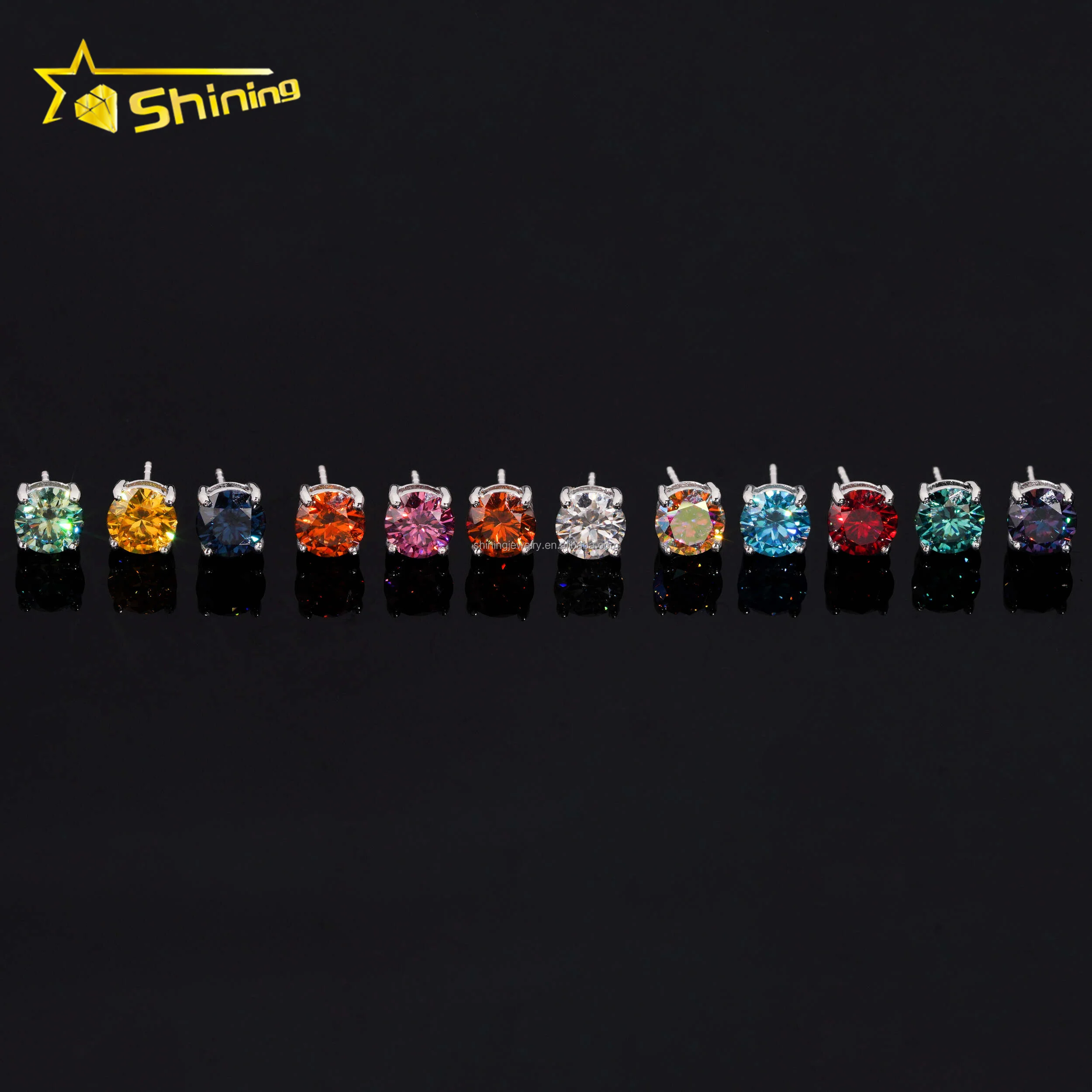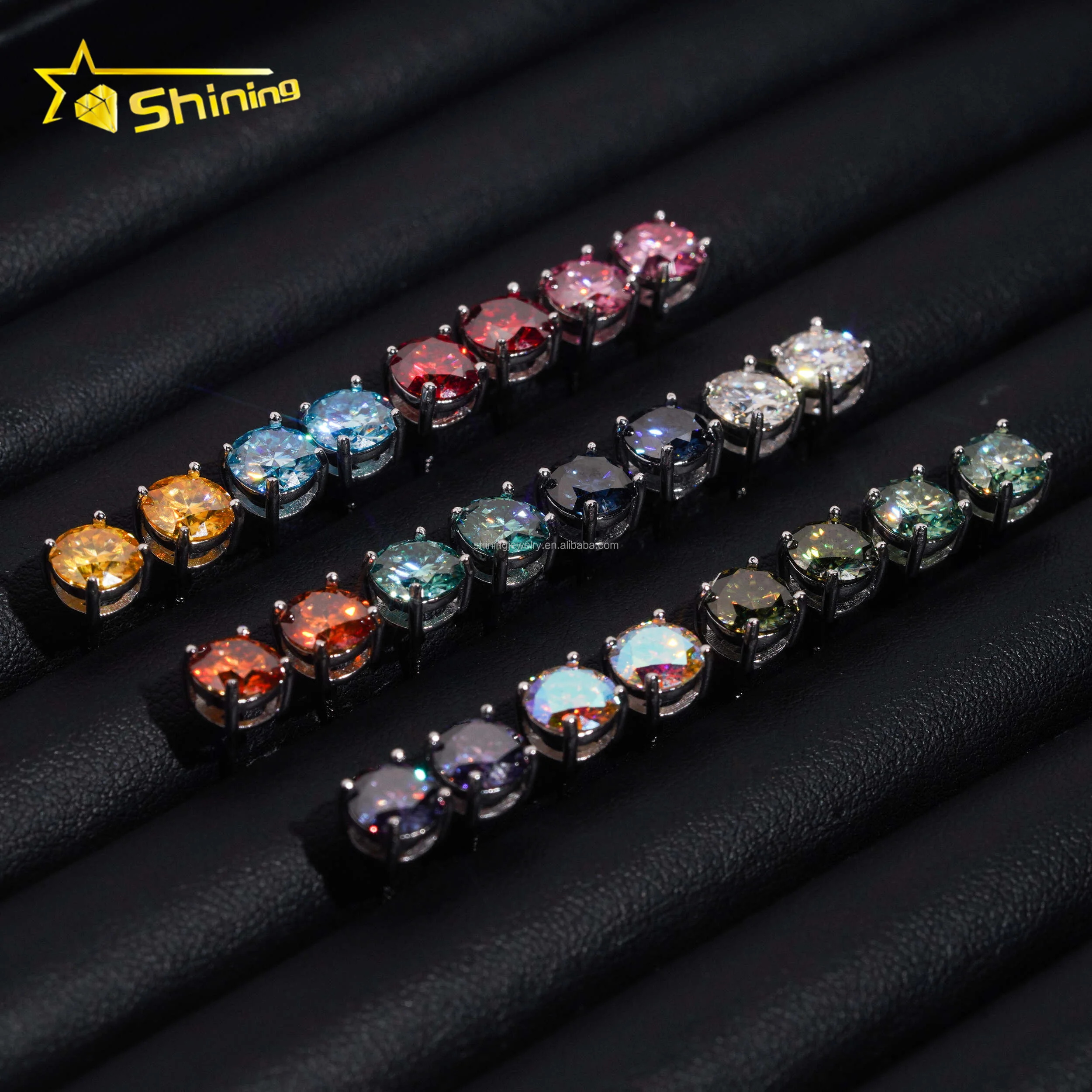 Pendientes de moissanita redondos y coloridos de 6,5 mm de RTS, joyería fina, chapados en oro, plata de ley 925, pendientes de moissanita VVS.