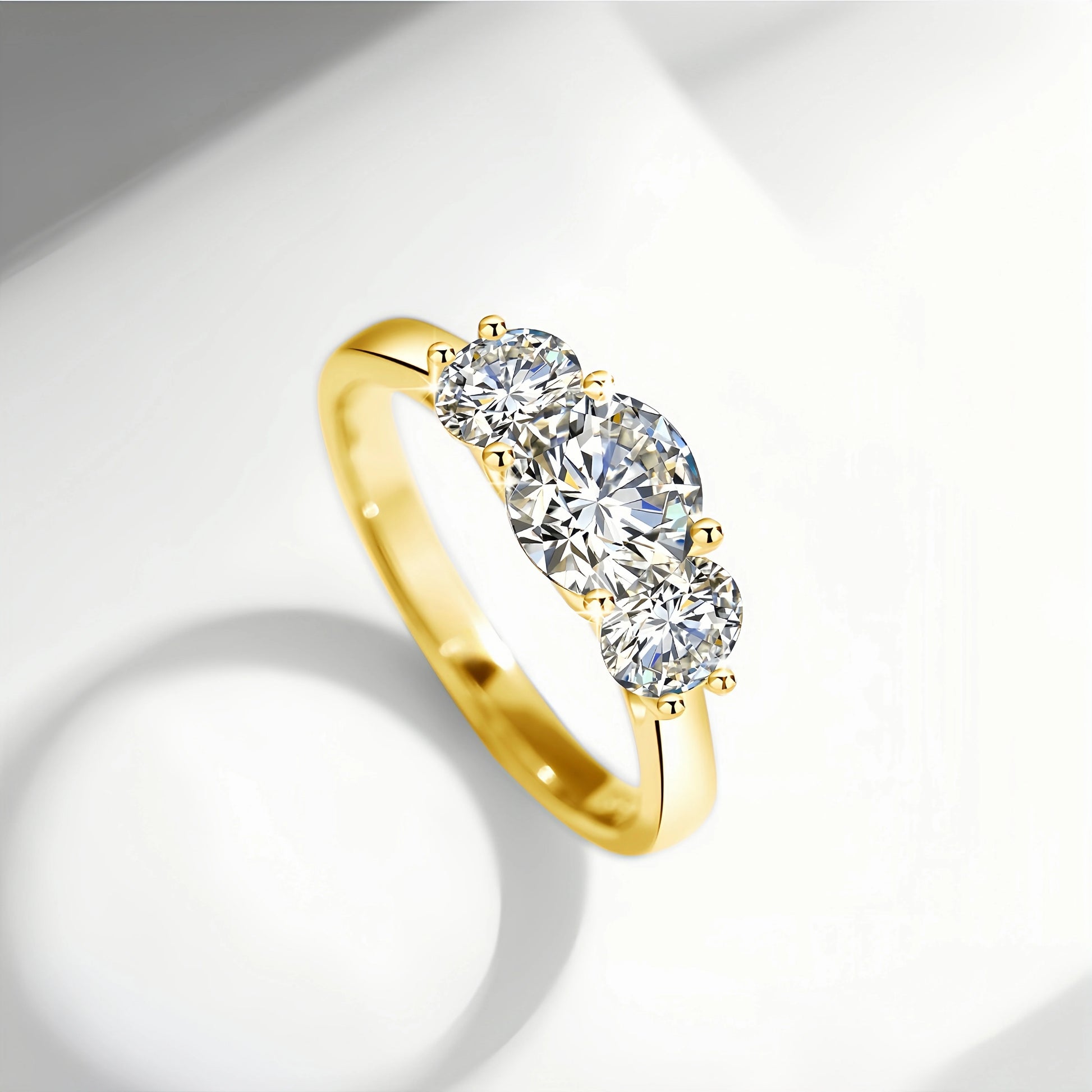 3 Stones Moissanite Ring in S925 (1/20 14K GF)
