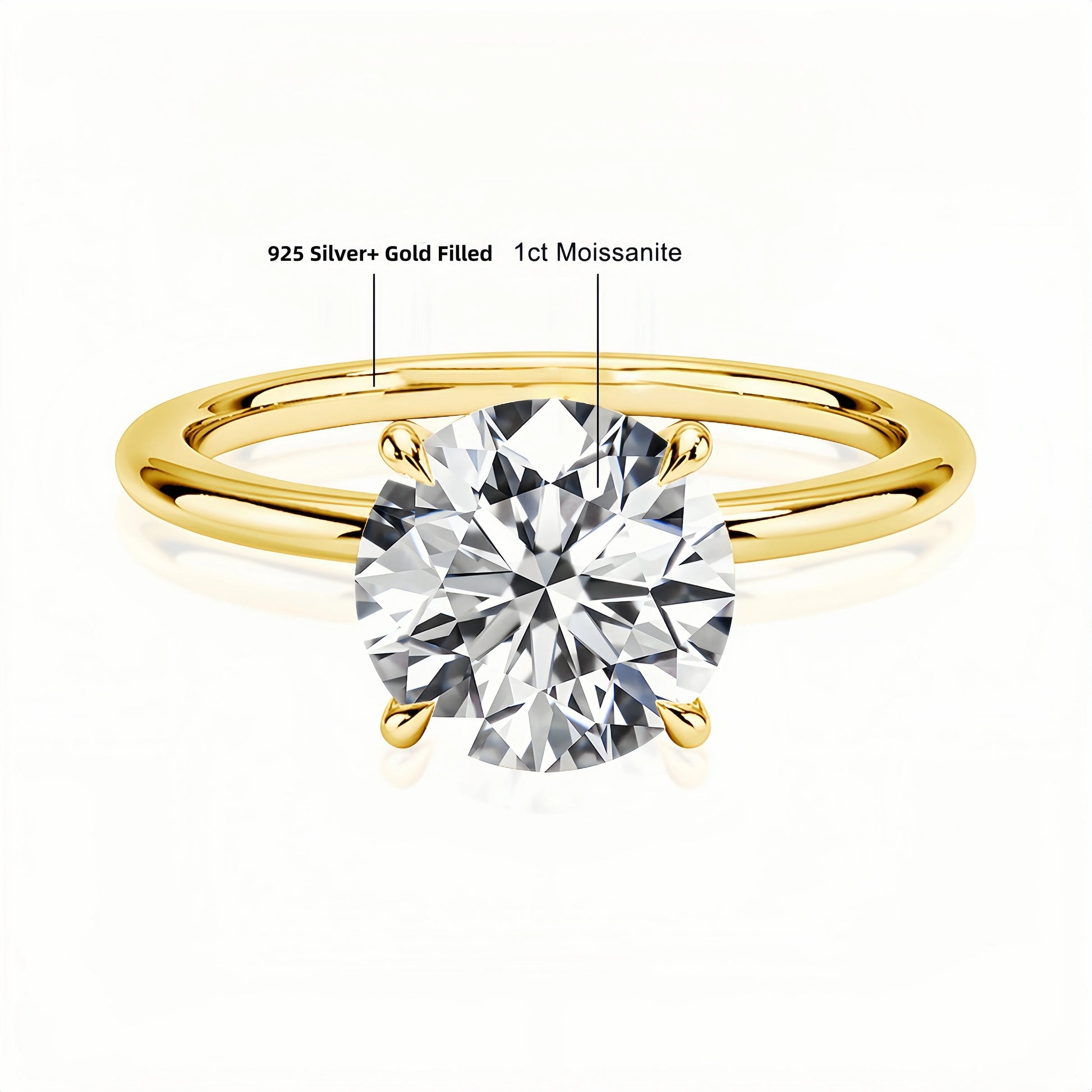 4 Prong Moissanite Solitarie Ring in 925 Sterling Silver with 1/20 14K Gold Filled