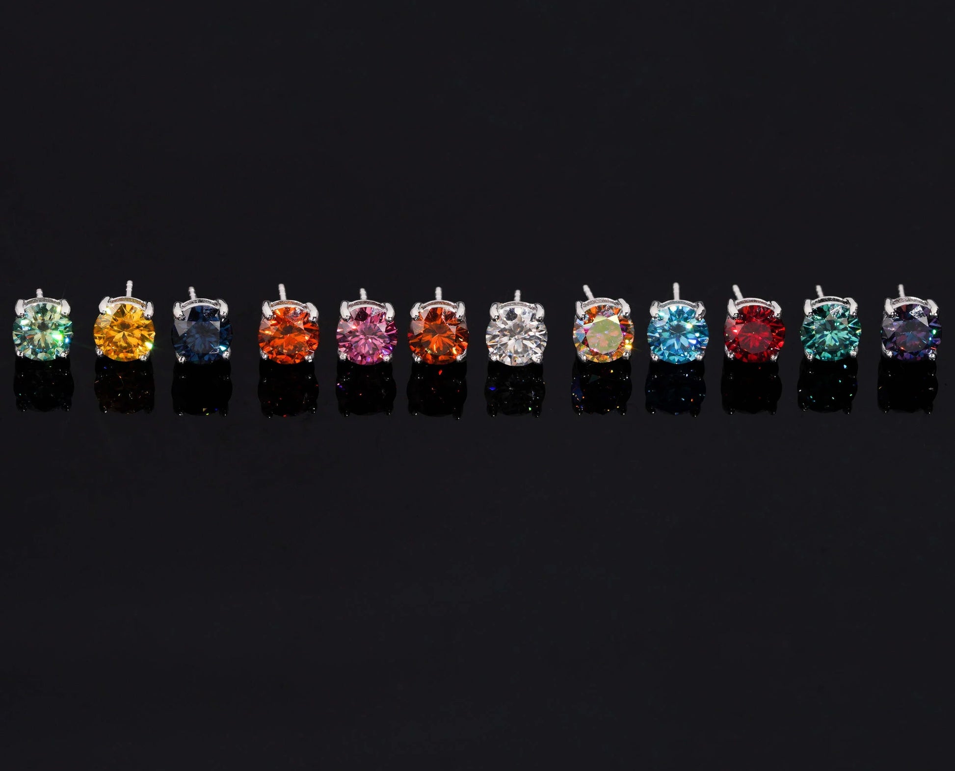 Round Colorful 6.5mm Moissanite Earrings in 925 Sterling Silver