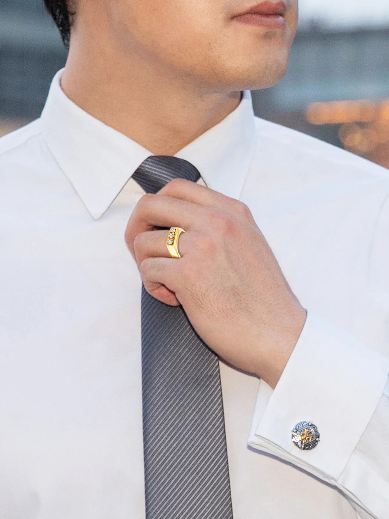 Moissanite 3 Stones Ring in 925 Sterling Silver with 1/20 14K Gold Filled